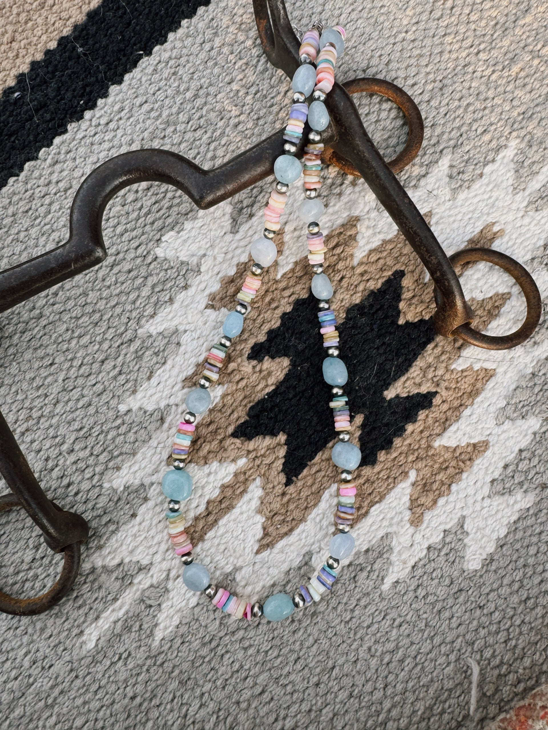 Dyed shell beads, Blue Jade