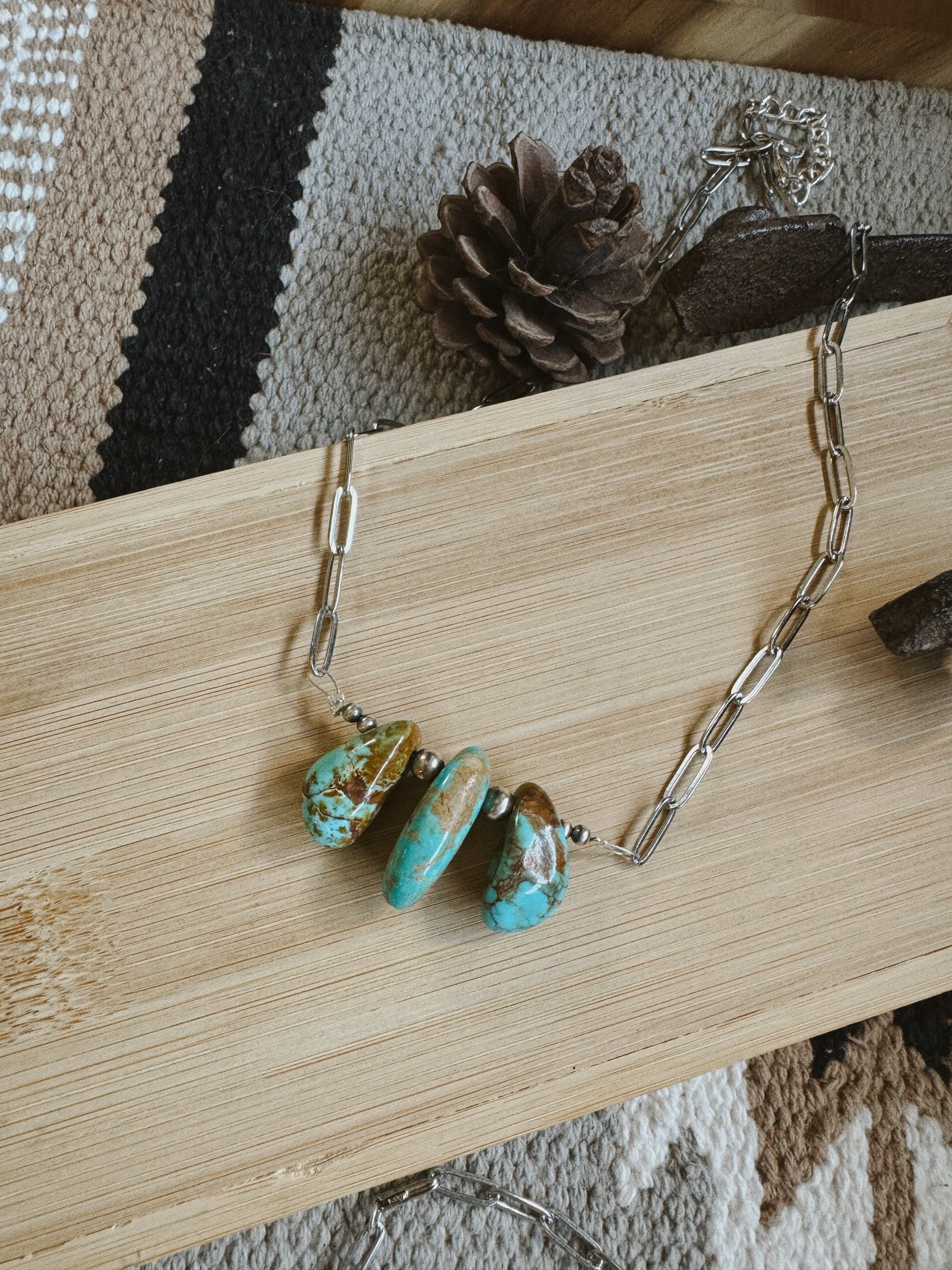 3 Kingman beads & sterling silver beads